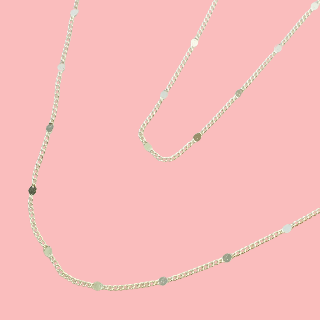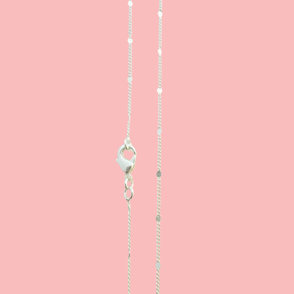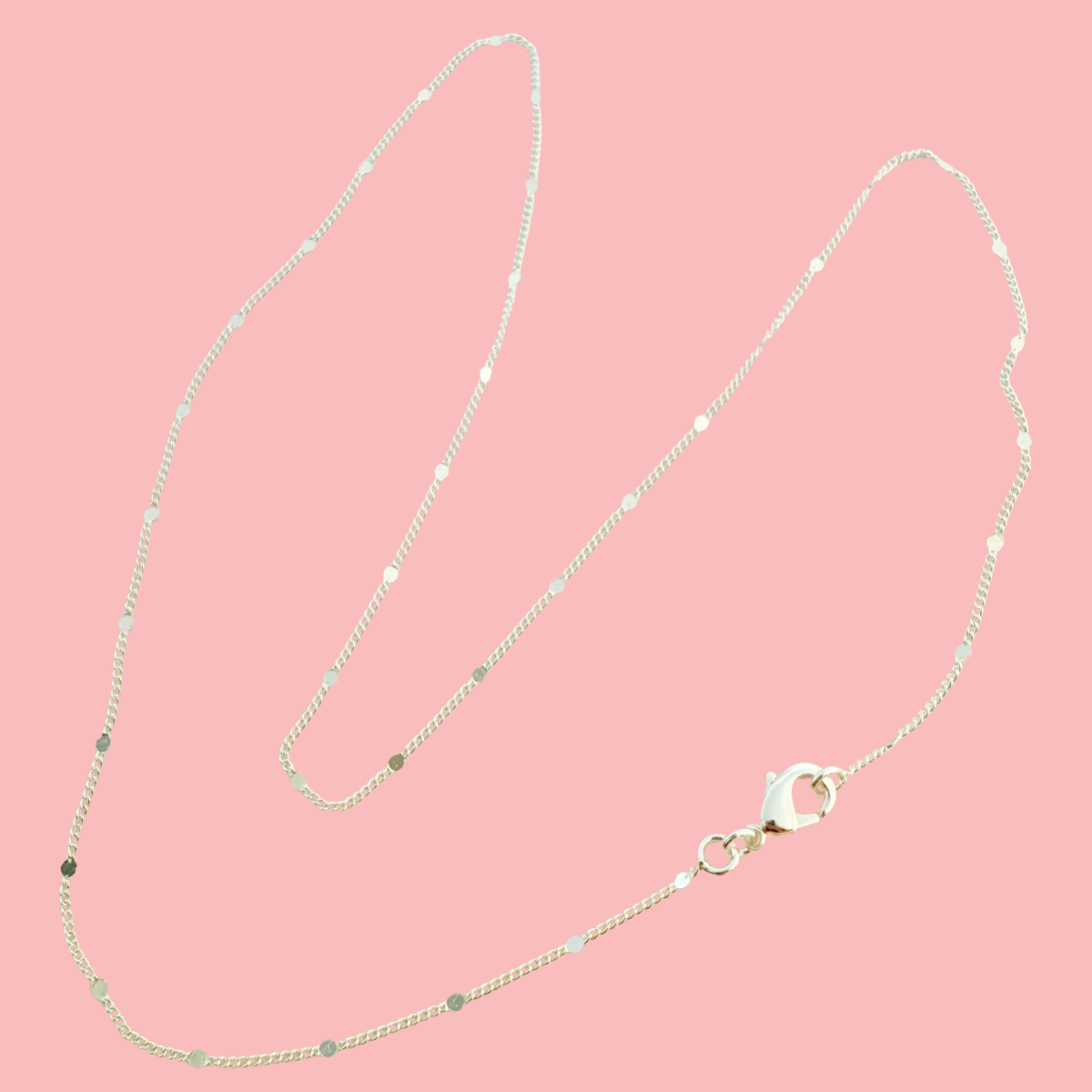 This delicate flat satellite chain is the perfect foundation for your jewellery designs. Crafted with fine 1mm silver-plated links and evenly spaced flat beads, it catches the light beautifully, giving your creations a refined sparkle.