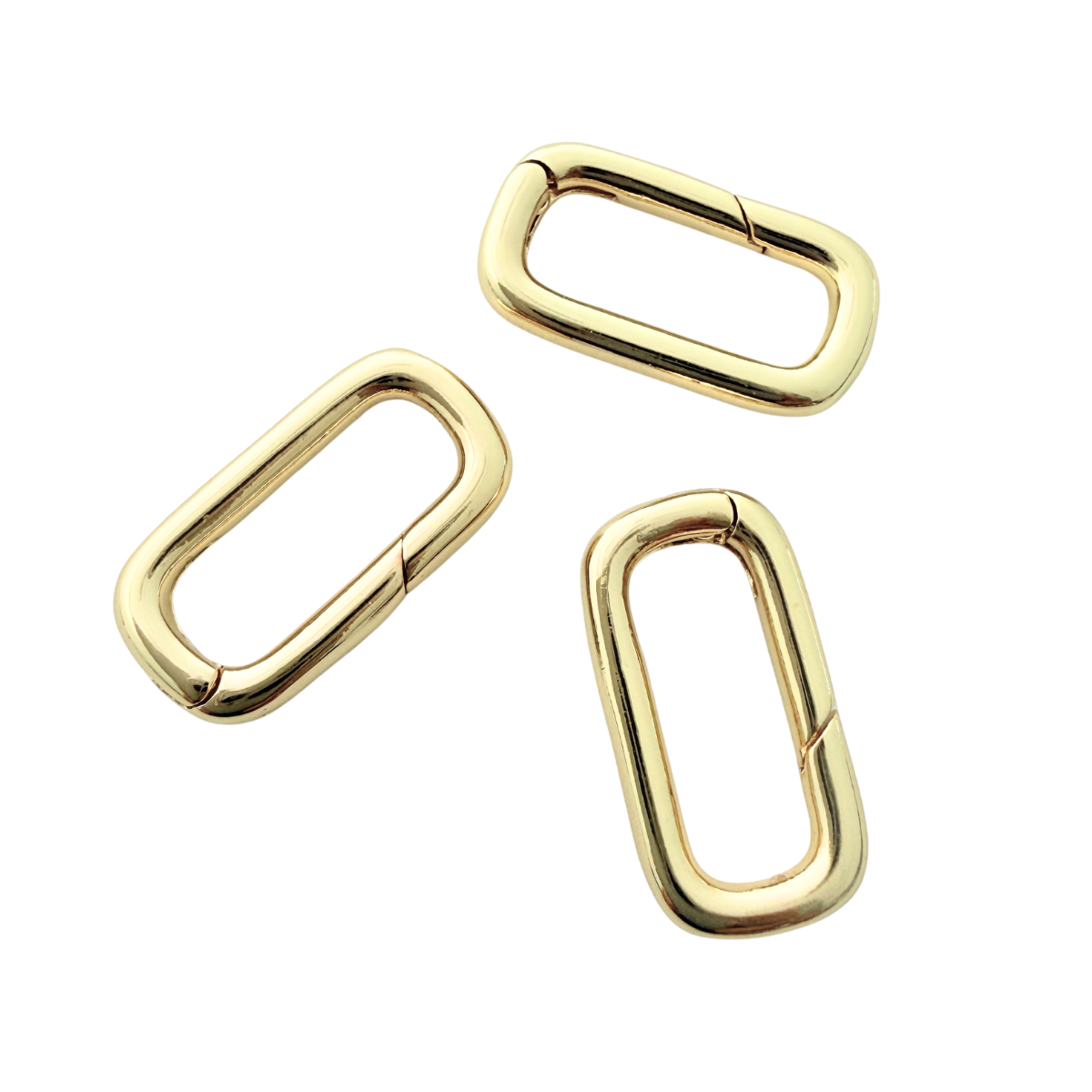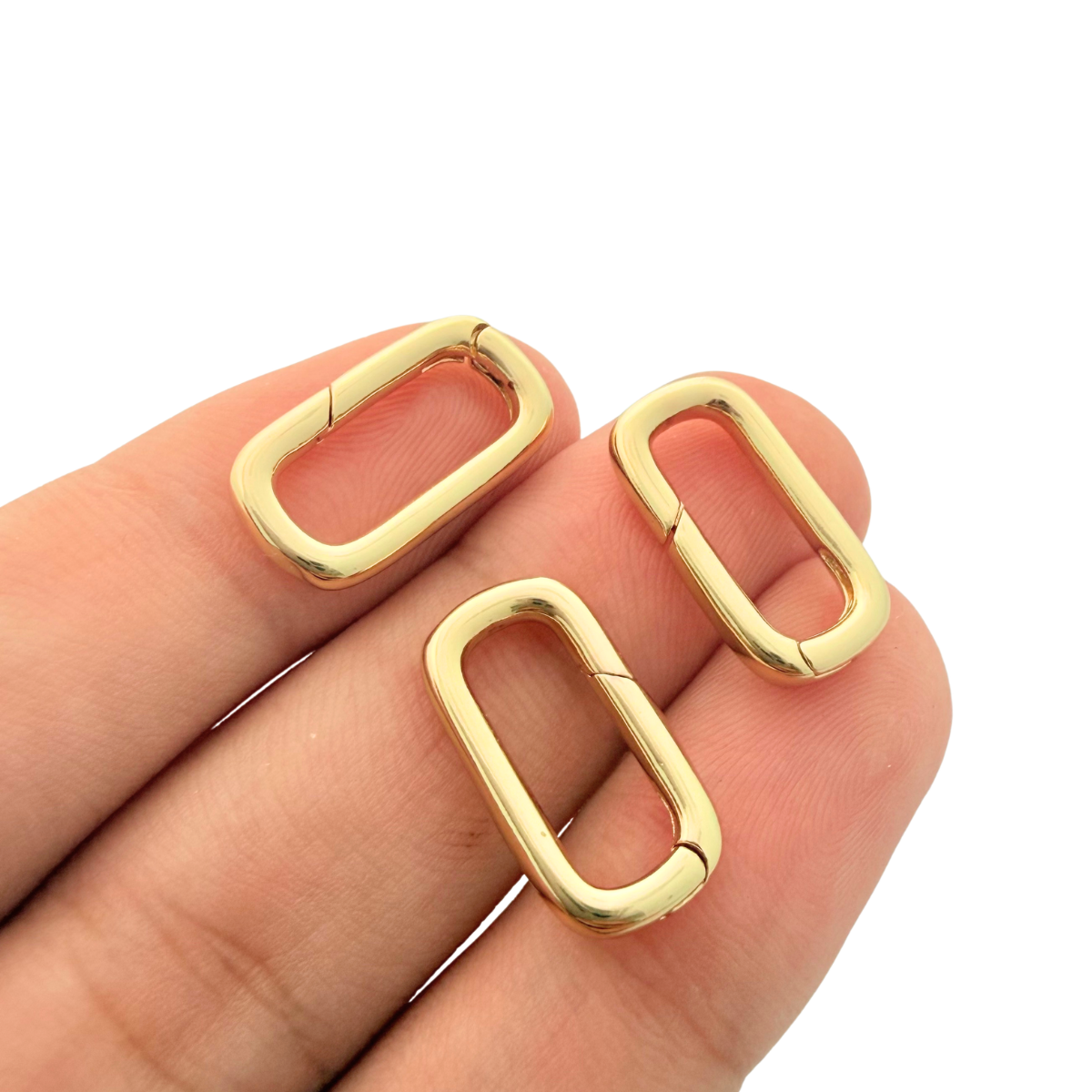 Sleek and functional, these rectangular carabiner clasps feature a smooth gold-plated finish with a secure spring closure, designed for both style and ease of use. The polished surface gives a clean, modern look, while the tarnish-resistant coating helps maintain their shine over time.