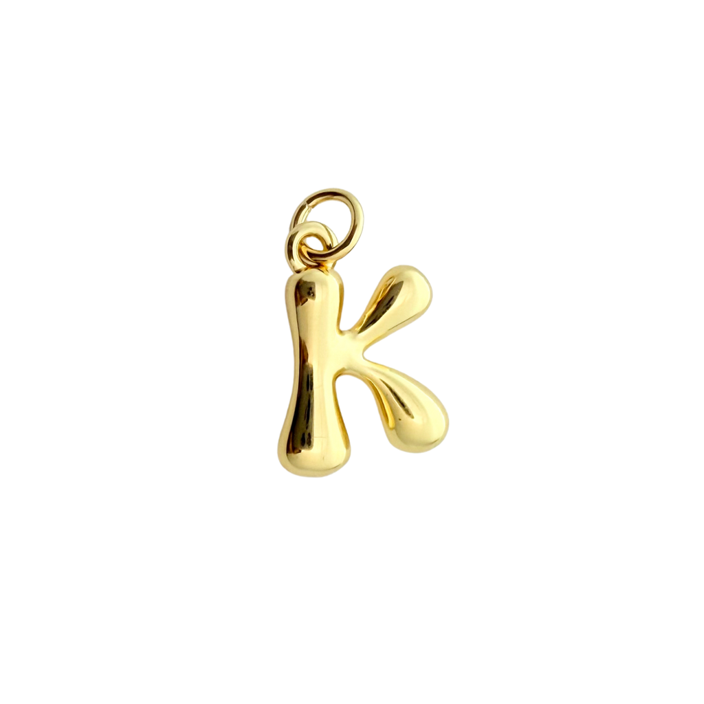 K Bubble Letter Charm 13mm 1pcs Gold Plated Tarnish Resistant Letter Pendant