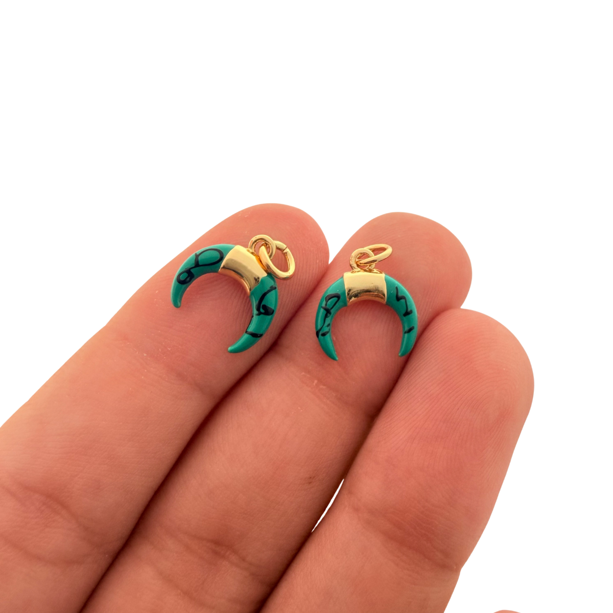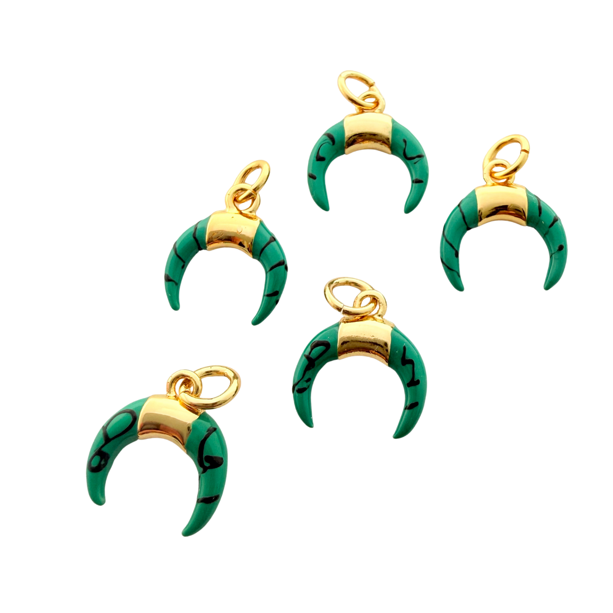Green Crescent Horn Charm 1pc Gold Plated Tarnish Resistant