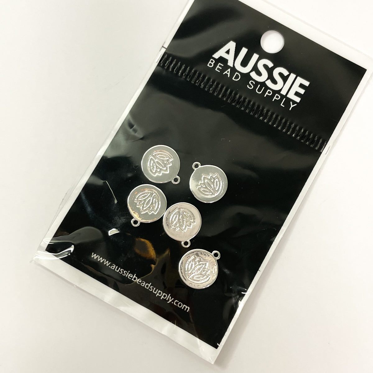 5pcs x 10mm Tarnish Resistant Silver Plated Lotus Flower Charms