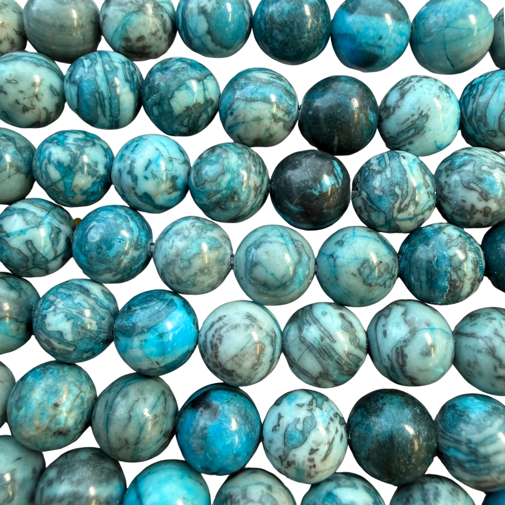Blue Spider Web Jasper 10mm Polished Round Gemstone Strand