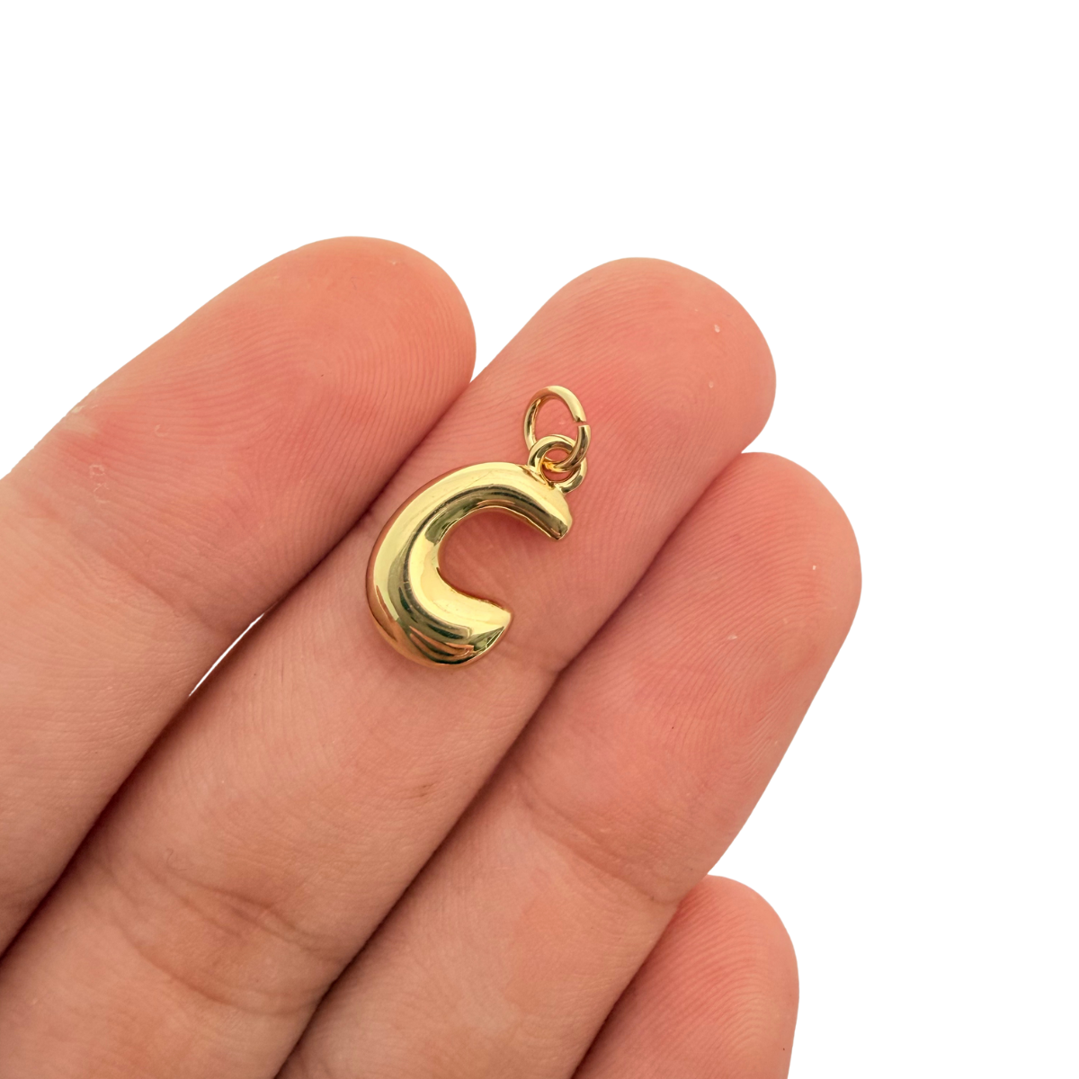 C Bubble Letter Charm 13mm 1pcs Gold Plated Tarnish Resistant Letter Pendant