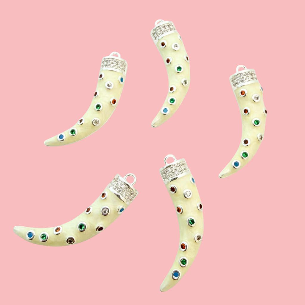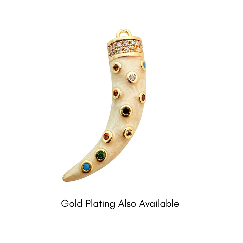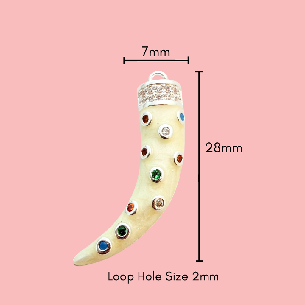 Add a bold, mystical touch to your jewellery designs with this Gemstone CZ Tusk Pendant. Inspired by ancient amulets of protection and strength, this statement charm features a swirling cream enamel body adorned with multicoloured gemstones and a sparkling pavé cap for a luxurious finish.
