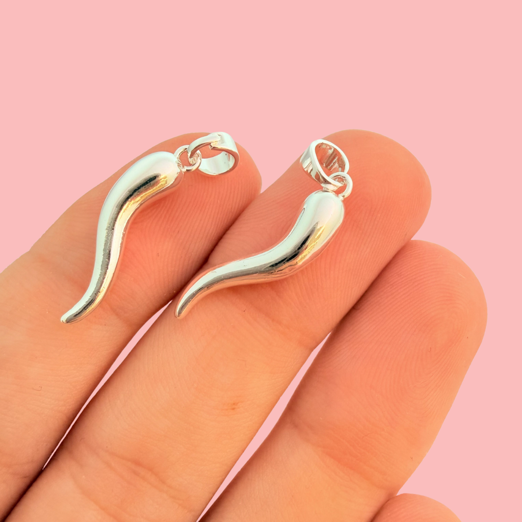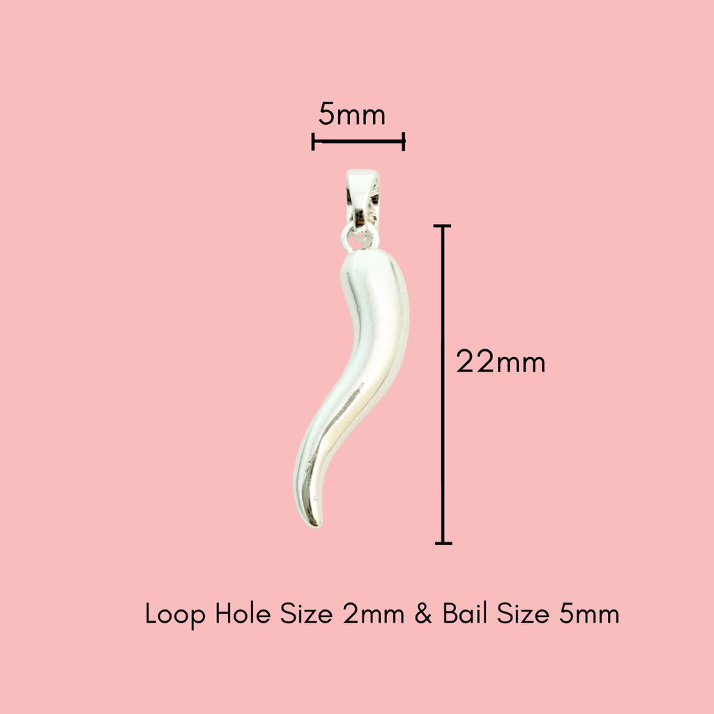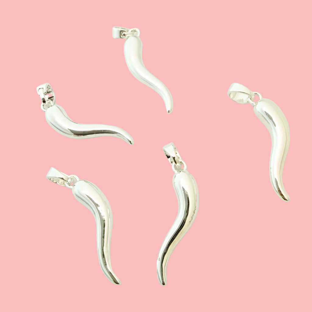 Add a playful, lucky touch to your jewellery designs with this sleek silver-plated chilli pendant, inspired by the traditional Italian cornicello symbol of protection and good fortune. Its smooth, curved shape catches the light beautifully, while the polished, tarnish-resistant finish gives it a refined shine. Perfect as a charm or statement pendant for unique, meaningful creations.