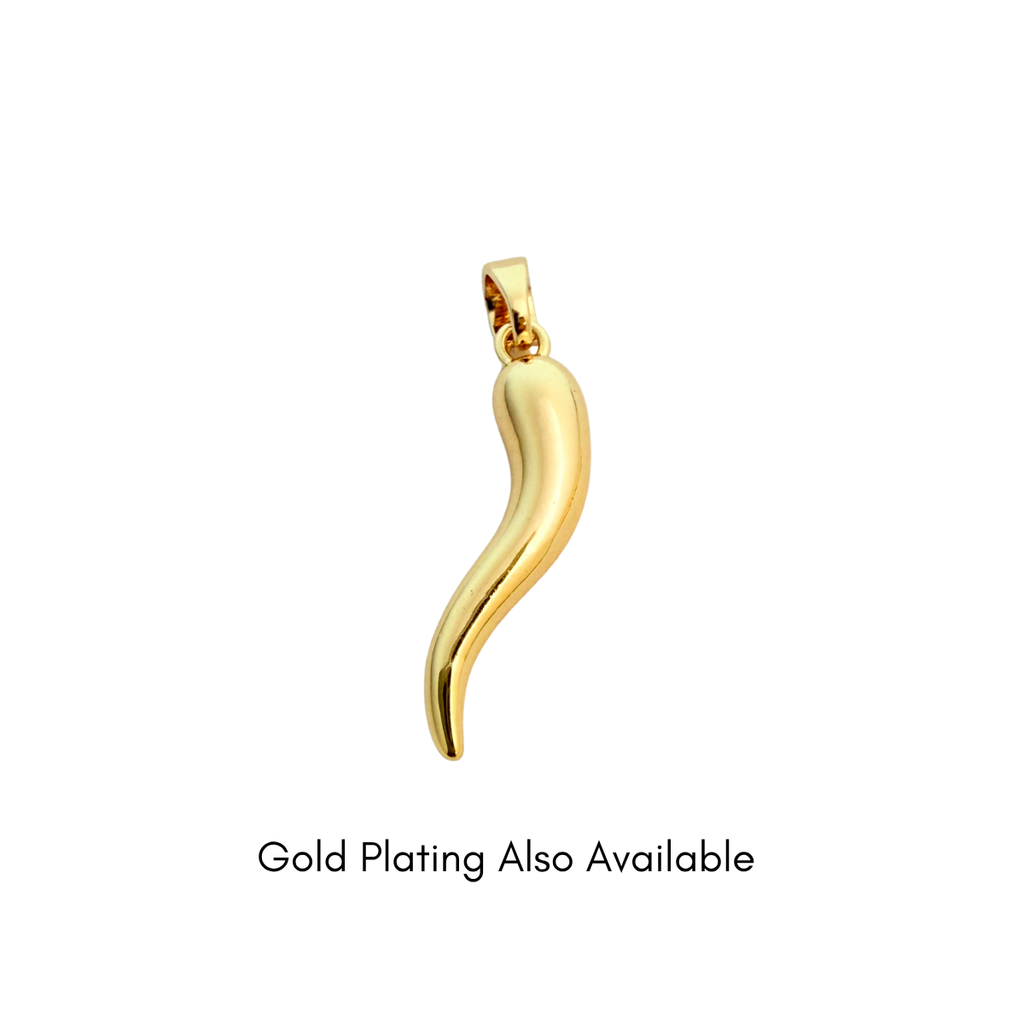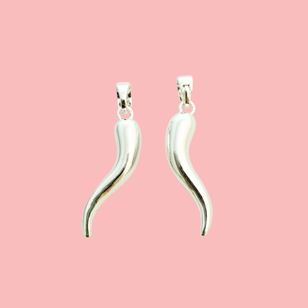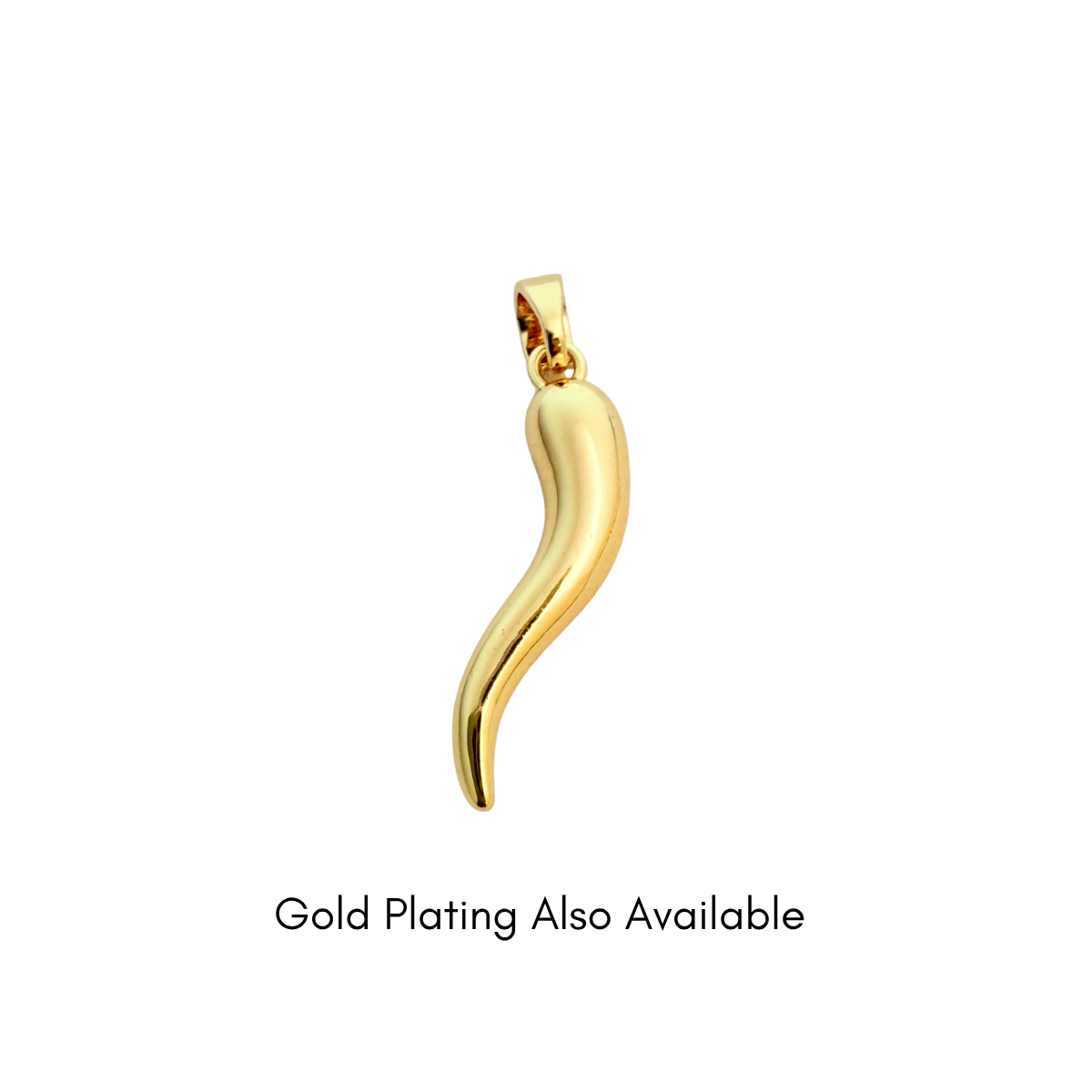 Add a playful, lucky touch to your jewellery designs with this sleek silver-plated chilli pendant, inspired by the traditional Italian cornicello symbol of protection and good fortune. Its smooth, curved shape catches the light beautifully, while the polished, tarnish-resistant finish gives it a refined shine. Perfect as a charm or statement pendant for unique, meaningful creations.