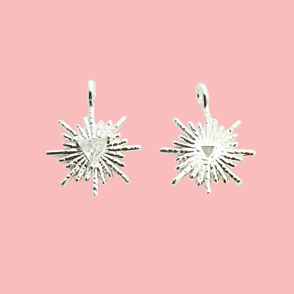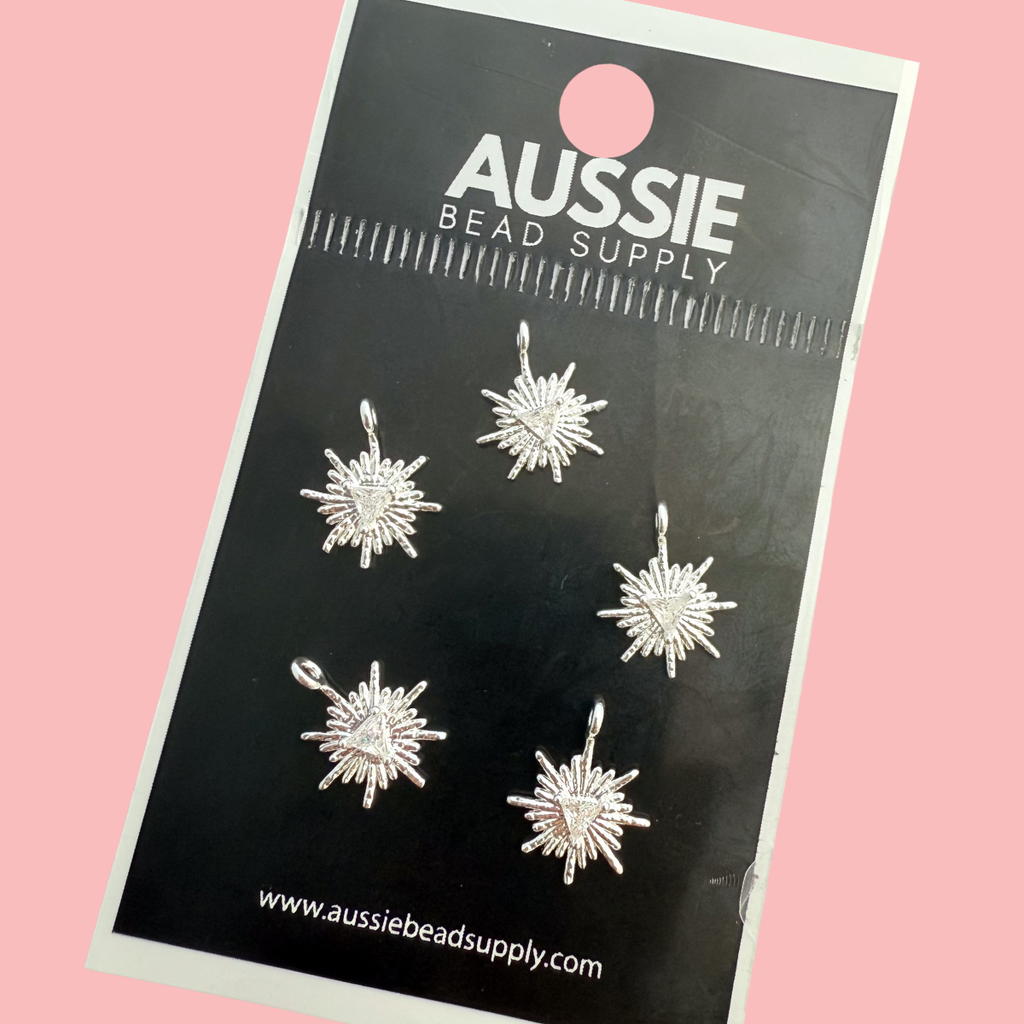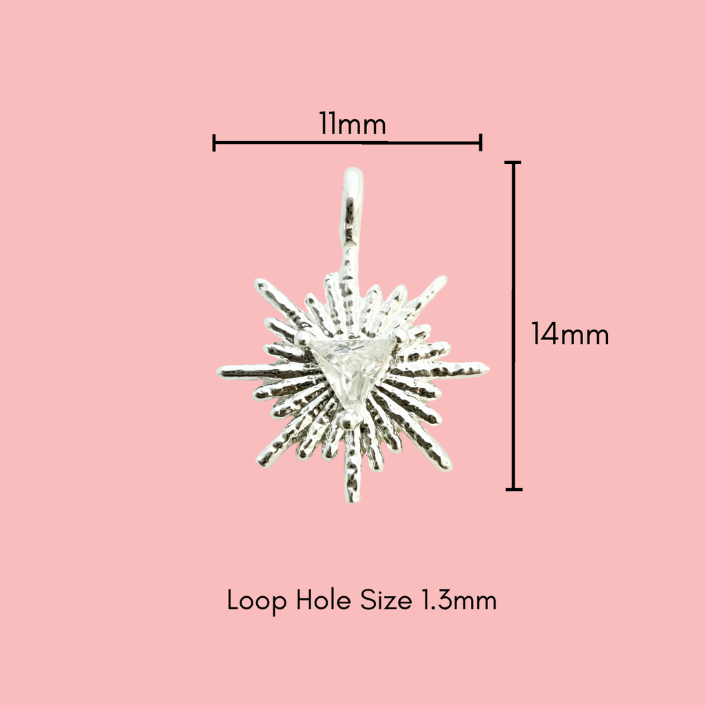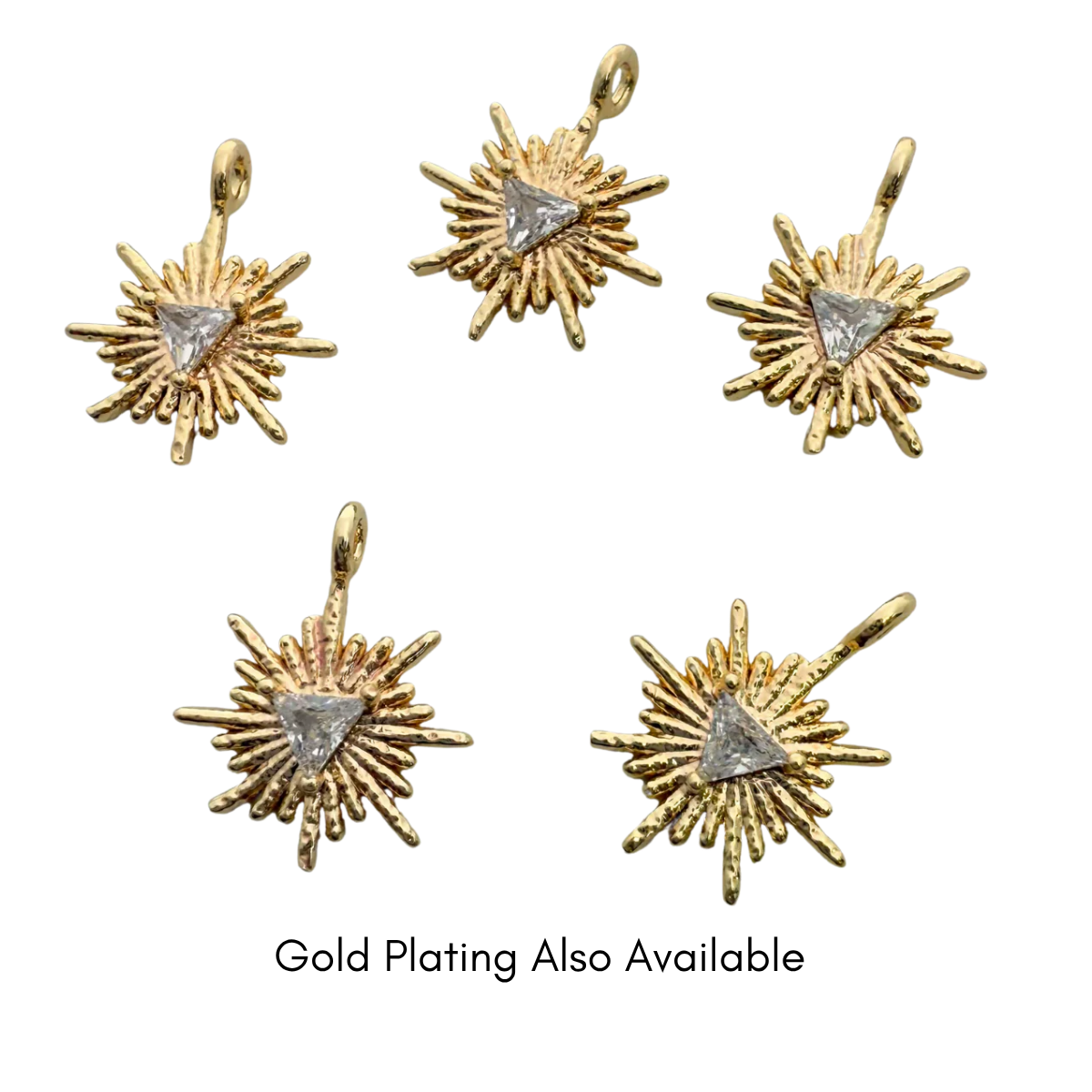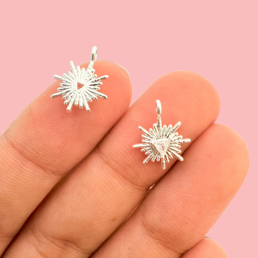 Mini CZ Sunburst Charm 11mm 5pcs Silver Plated Tarnish Resistant Pendan