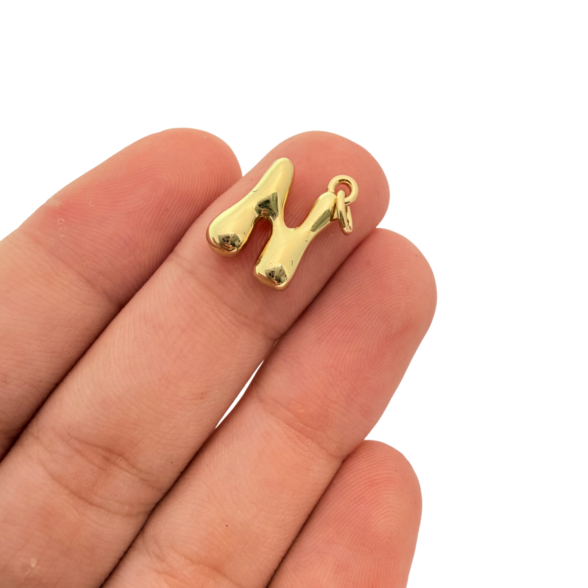 N Bubble Letter Charm 13mm 1pcs Gold Plated Tarnish Resistant Letter Pendant