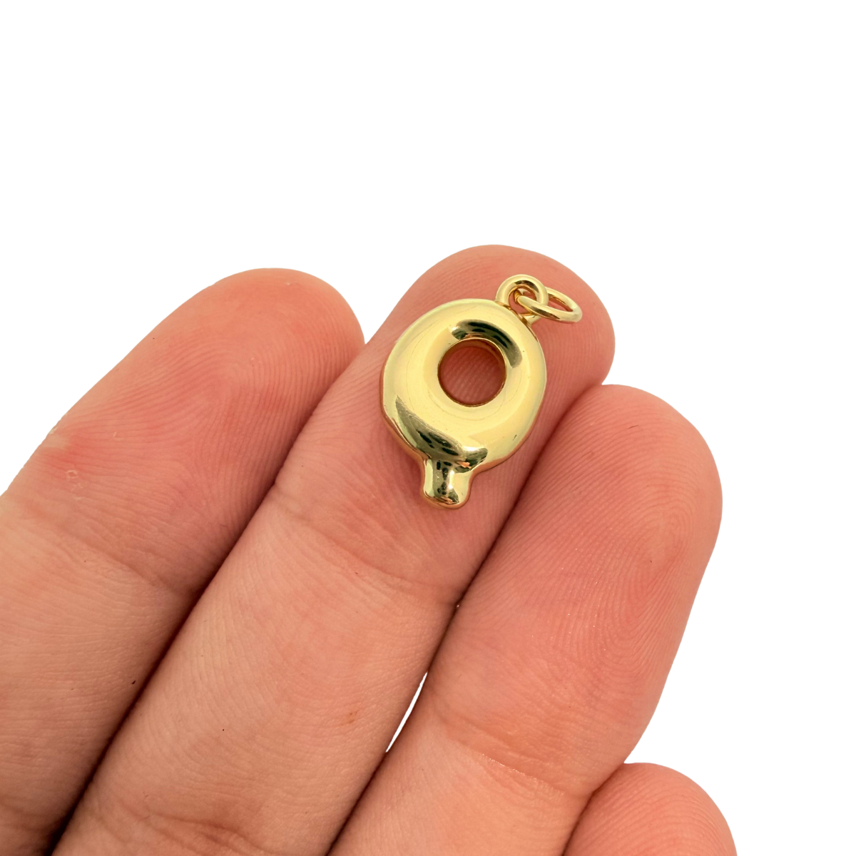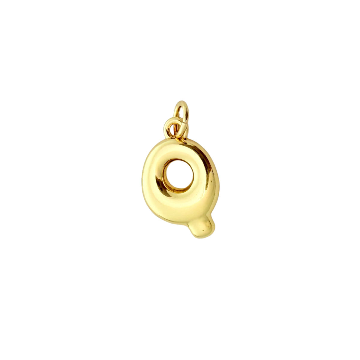Q Bubble Letter Charm 13mm 1pcs Gold Plated Tarnish Resistant Letter Pendant