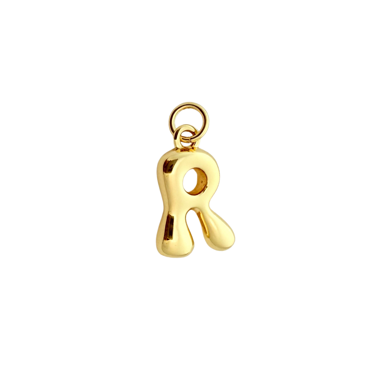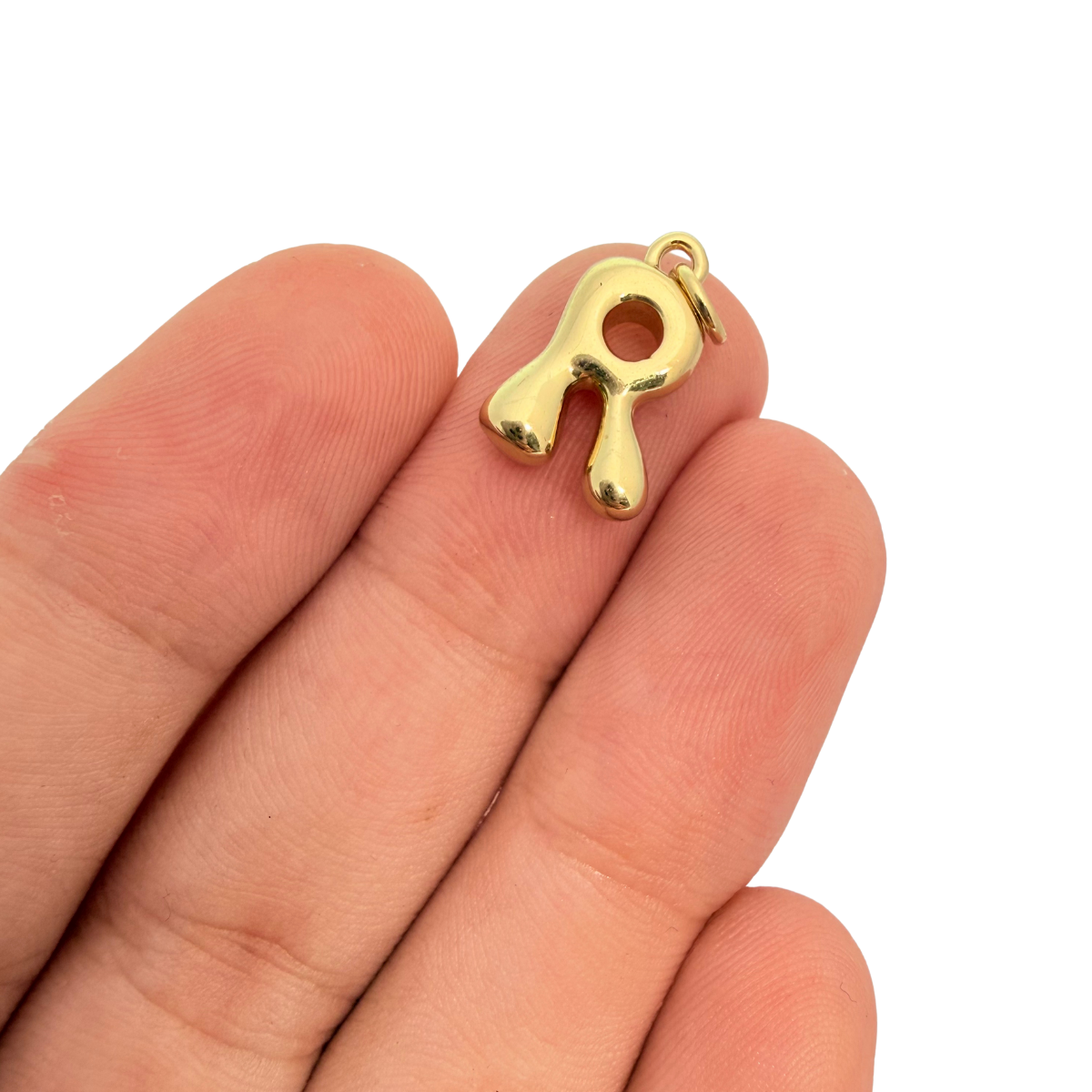 R Bubble Letter Charm 13mm 1pcs Gold Plated Tarnish Resistant Letter Pendant