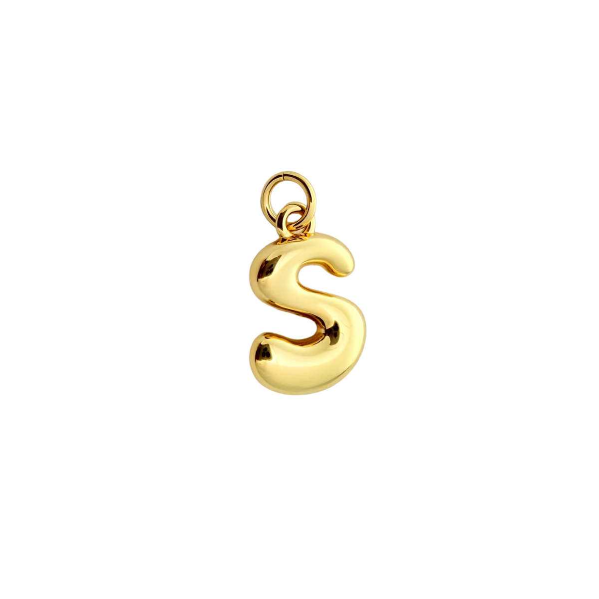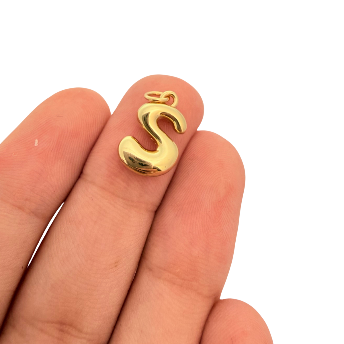 S Bubble Letter Charm 13mm 1pcs Gold Plated Tarnish Resistant Letter Pendant