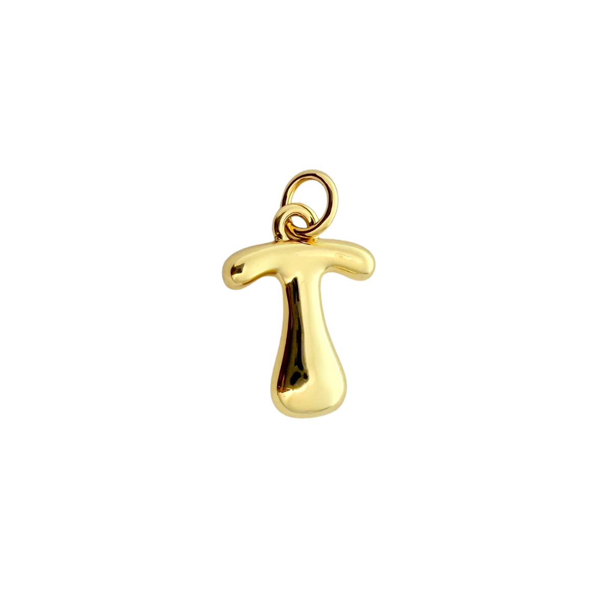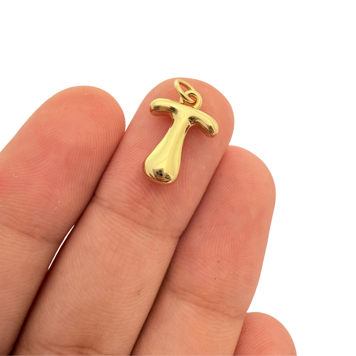 T Bubble Letter Charm 13mm 1pcs Gold Plated Tarnish Resistant Letter Pendant