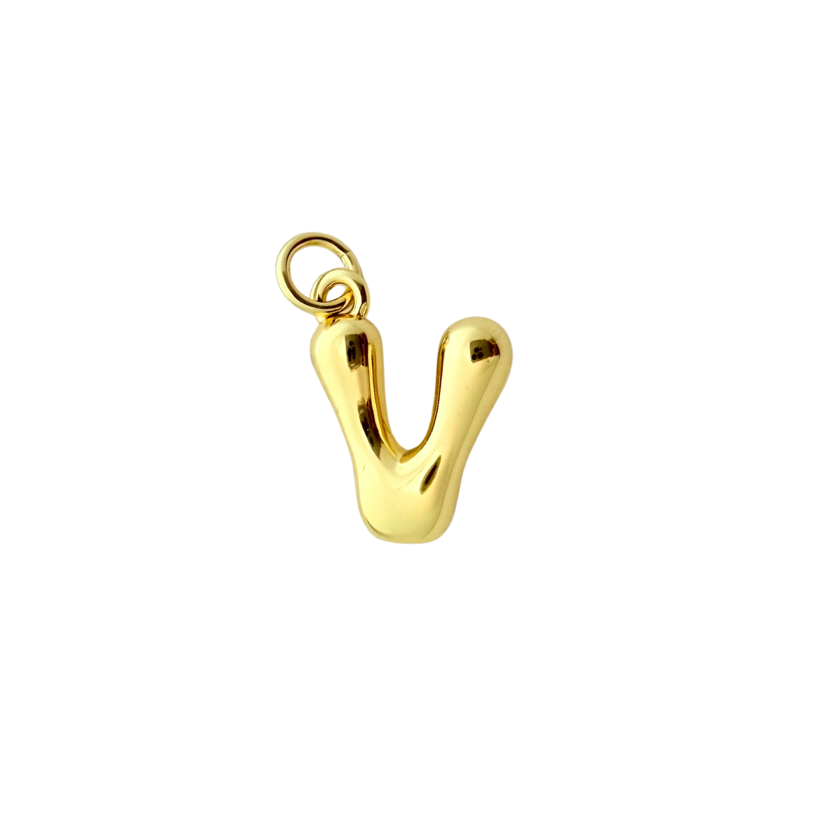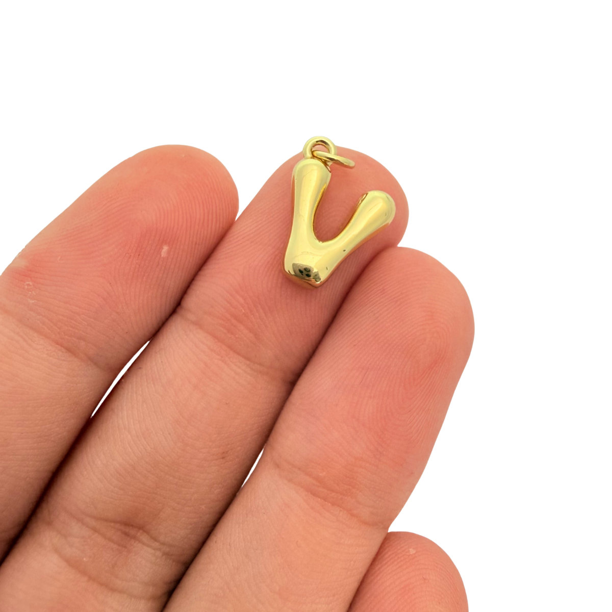 V Bubble Letter Charm 13mm 1pcs Gold Plated Tarnish Resistant Letter Pendant