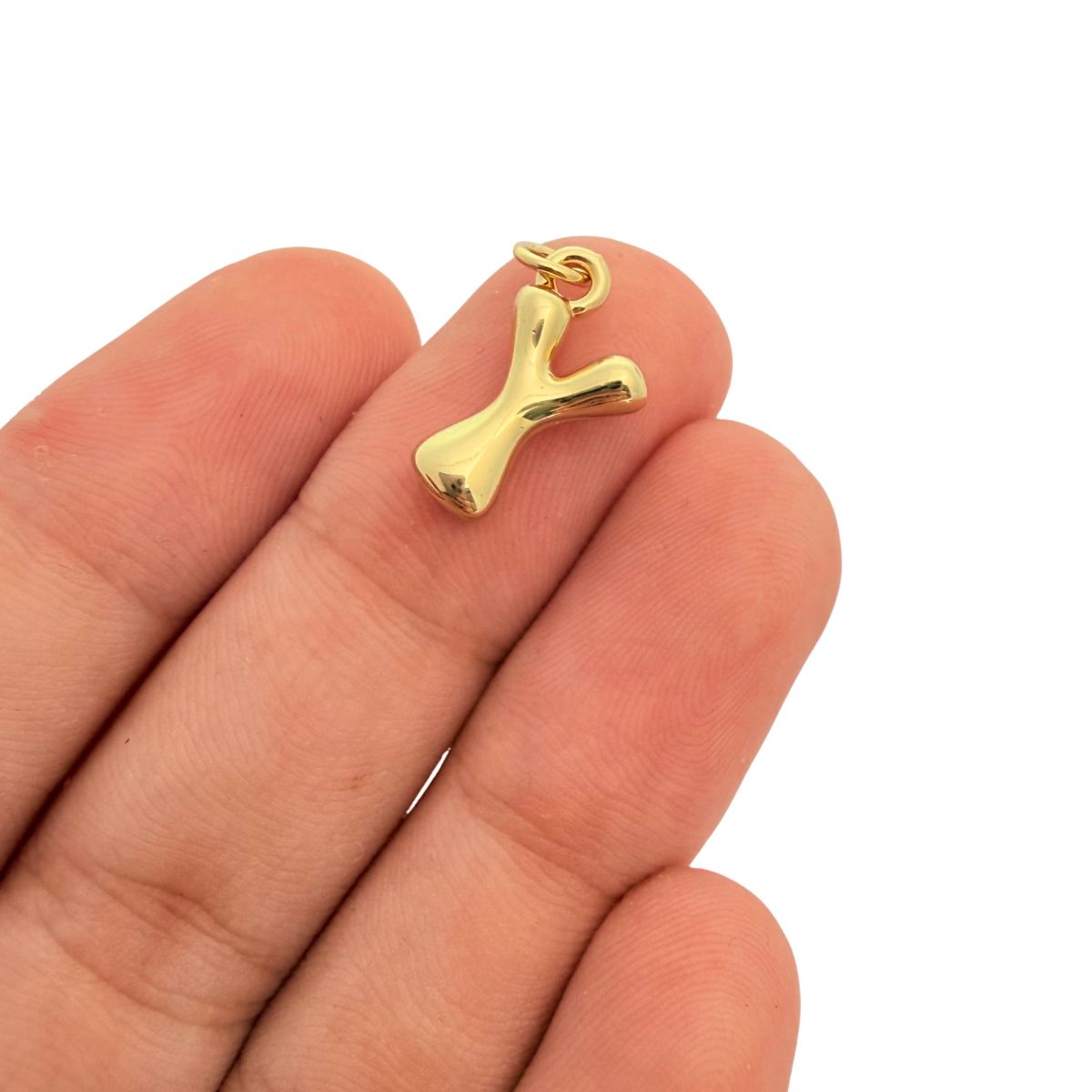 Y Bubble Letter Charm 13mm 1pcs Gold Plated Tarnish Resistant Letter Pendant