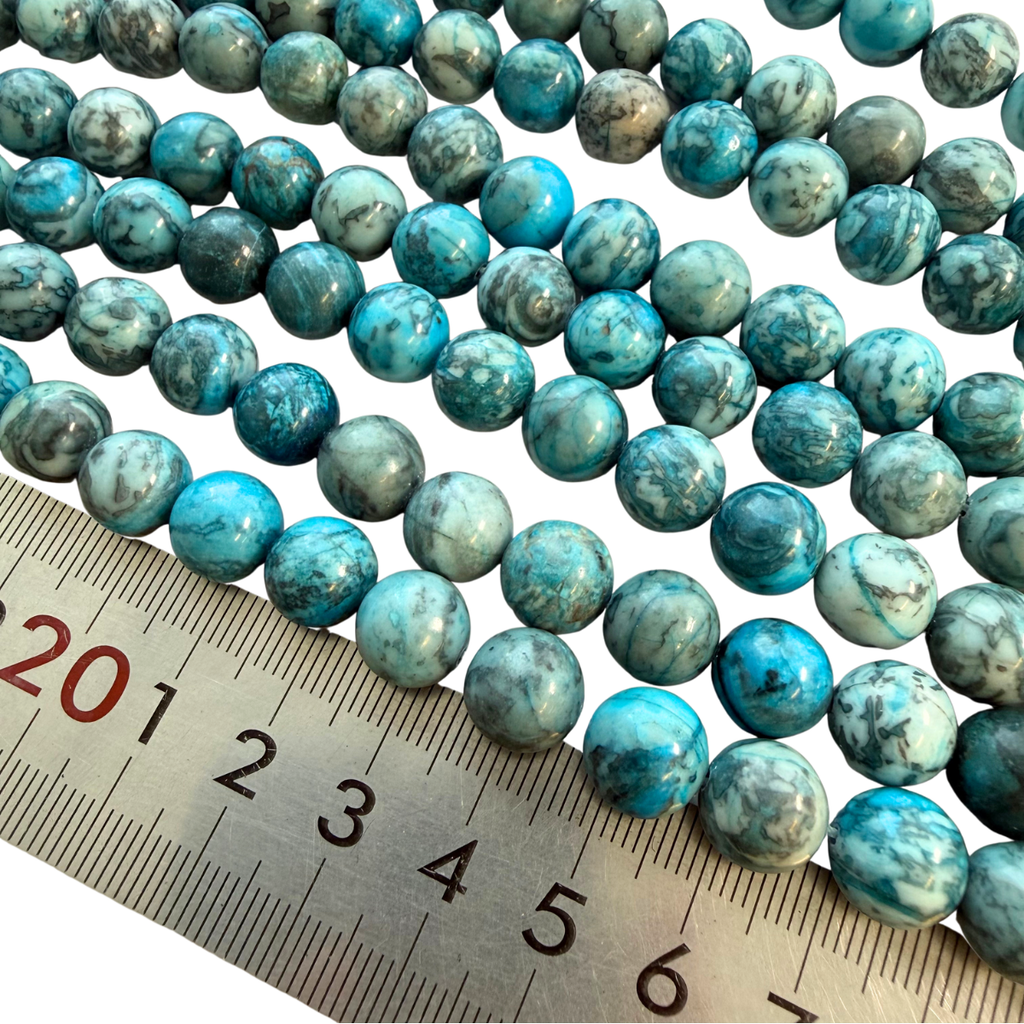 Blue Spider Web Jasper 10mm Polished Round Gemstone Strand