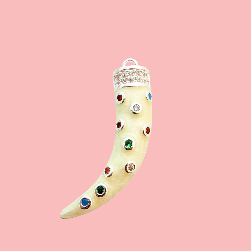 Gemstone CZ Tusk Pendant 1pc Silver Plated Tarnish Resistant