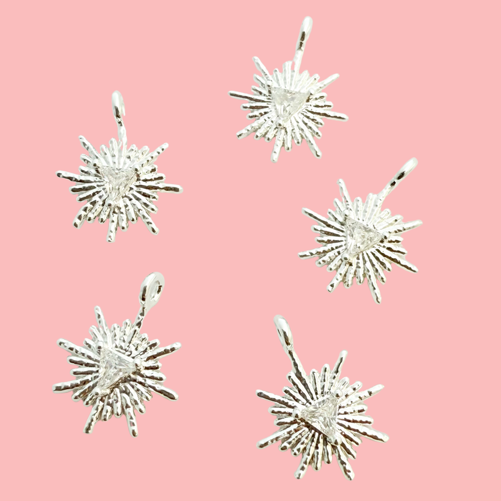 Mini CZ Sunburst Charm 11mm 5pcs Silver Plated Tarnish Resistant Pendan