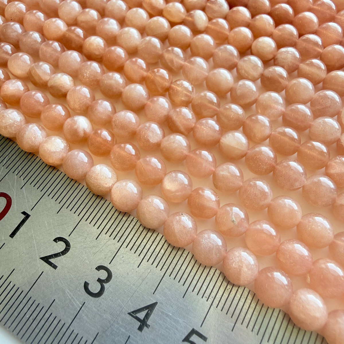 Premium Peach Moonstone 6mm Polished Round Natural Gemstone Bead Strand