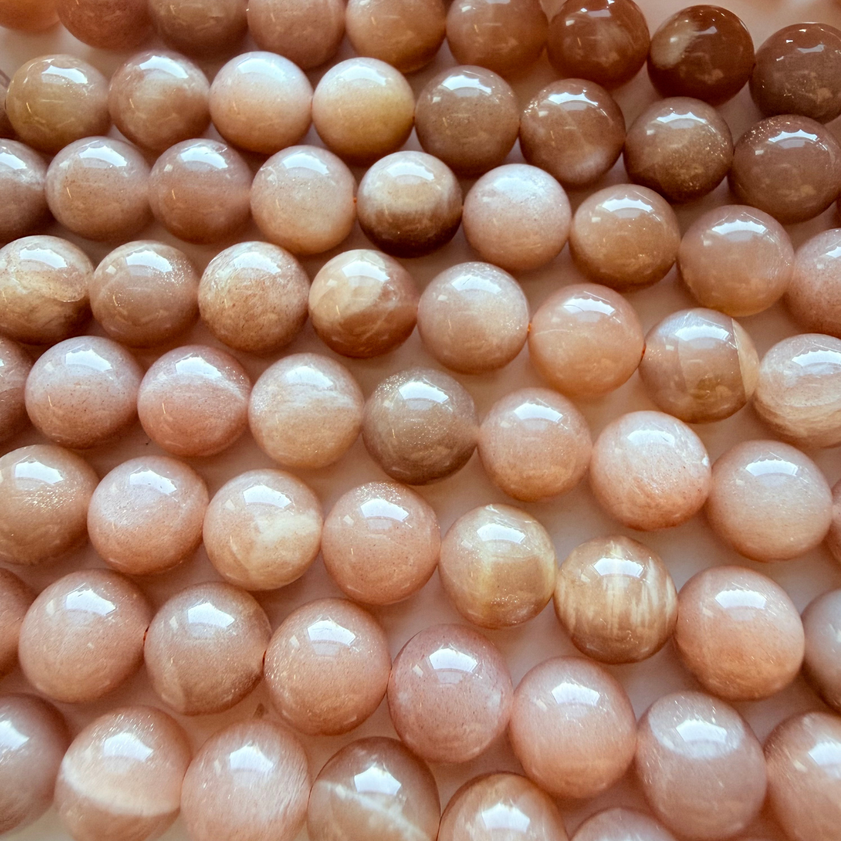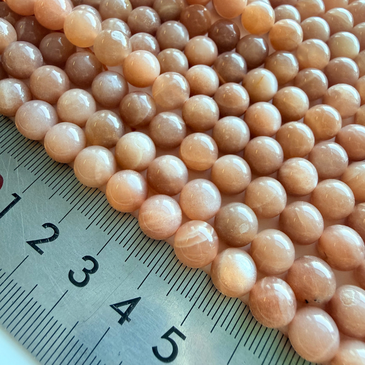This Premium Peach Moonstone strand is a higher-grade selection than our regular range, carefully chosen for its soft luminous glow, consistent colour, and smooth polished finish. Each high-grade bead displays gentle peach to blush tones with a subtle shimmer that adds warmth and elegance to your designs.
