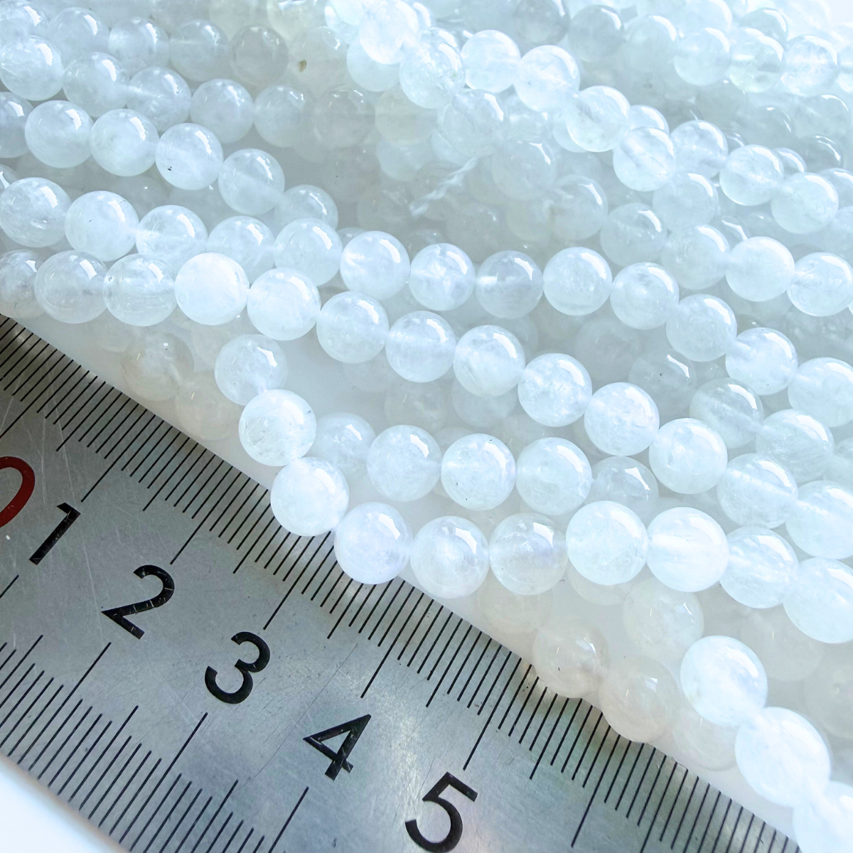 This Premium Rainbow Moonstone strand is a higher-grade selection than our regular range, chosen for its stronger adularescence, improved clarity, and smooth, even polish. Each high-grade bead features milky white tones with flashes of blue and subtle rainbow sheen, finished in a glossy round shape.