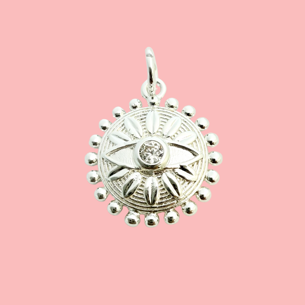Evil Eye Flower Charm Silver Plated Tarnish Resistant Pendant