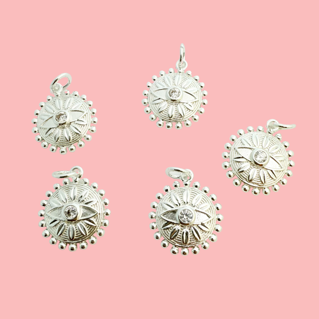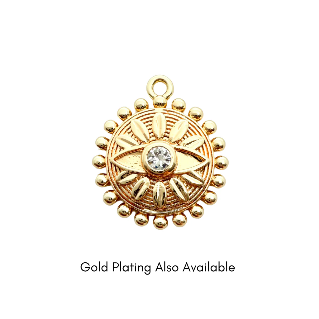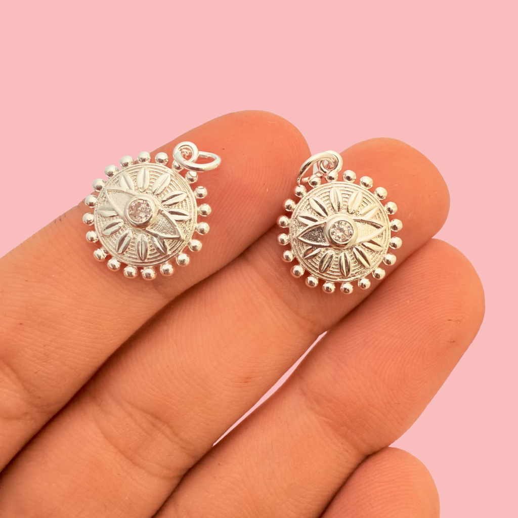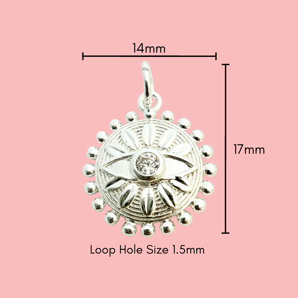 Add a unique and symbolic touch to your designs with this Eye Flower Charm. Featuring a delicate evil eye and flower design with a radiant silver-plated finish, this charm offers both beauty and meaning. The tarnish-resistant coating ensures long-lasting shine, perfect for necklaces, bracelets, or protective, eye-catching jewellery pieces.