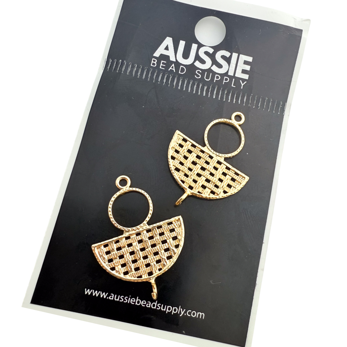 Fan Earring Component 28mm 1 Pair Gold Plated Tarnish Resistant Findings
