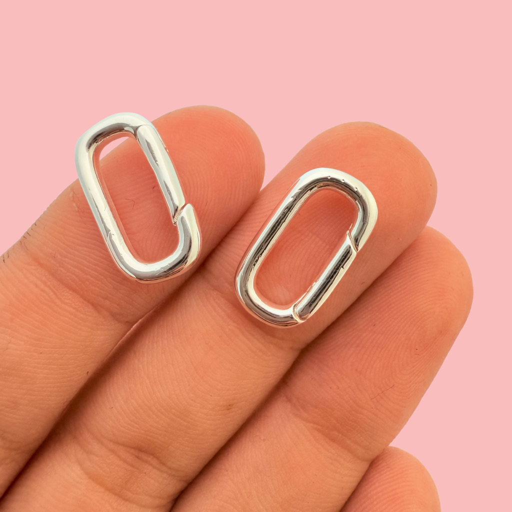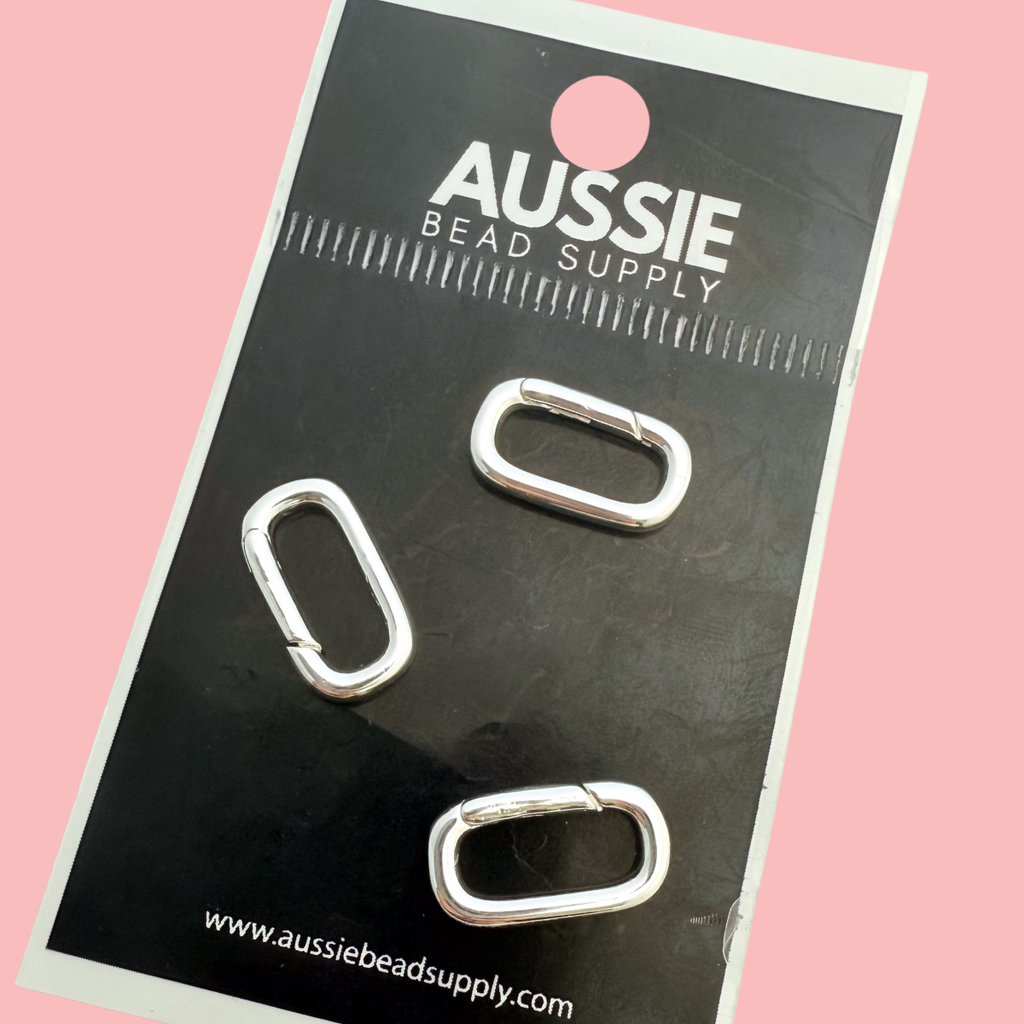 Finish your designs like a pro with our 17.5x10mm oval carabiner clasps, perfect for creating modern, interchangeable jewellery pieces or functional accessories. These stylish clasps open with a hinge mechanism, making them ideal for charm holders, keychains, or statement connectors.