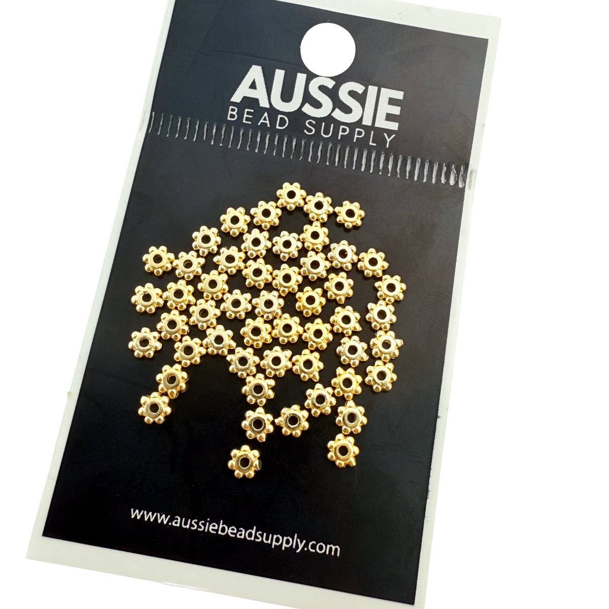 Daisy Spacer Beads 4mm 50pcs Gold Plated Tarnish Resistant