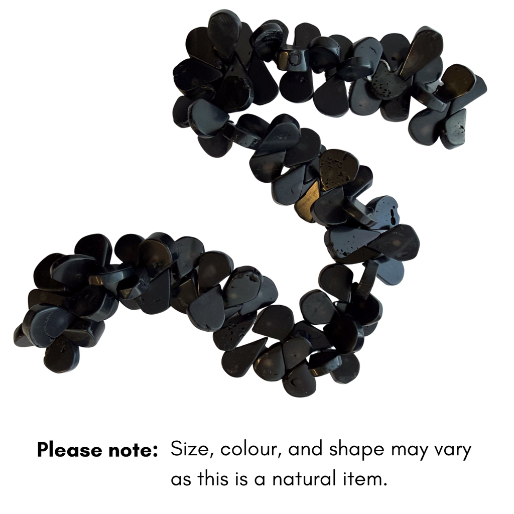 Create striking, ocean-inspired designs with these large black top-drilled teardrop coral beads, made from sustainably farmed and dyed coral. Each bead has its own natural texture and organic shape, offering depth and character to your pieces. Their bold black finish adds a modern, dramatic edge — perfect for statement earrings, pendants, or layered necklaces with a coastal twist.