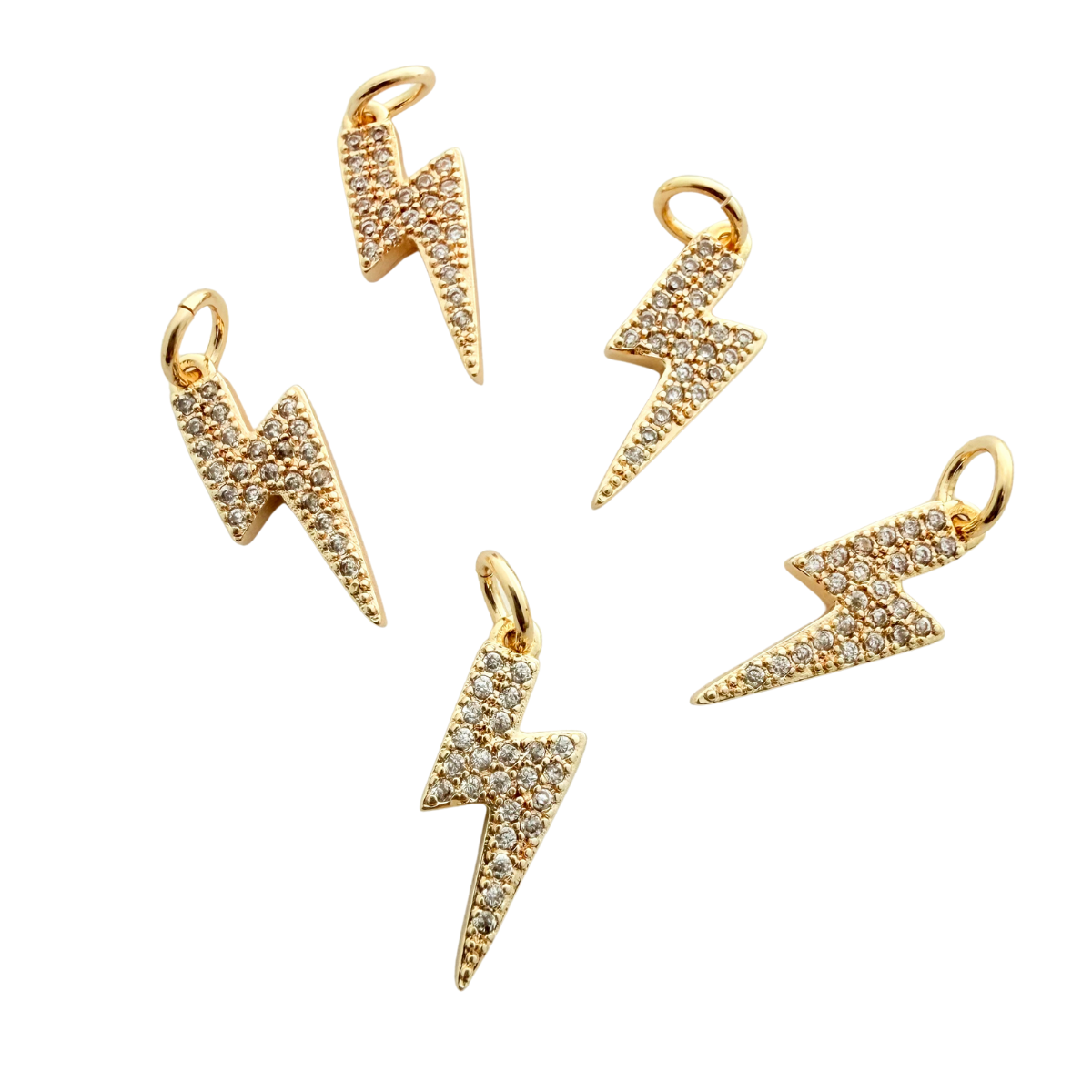 Mini CZ Lightning Bolt Charm 5pcs Gold Plated Tarnish Resistant