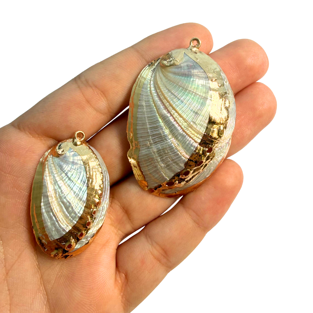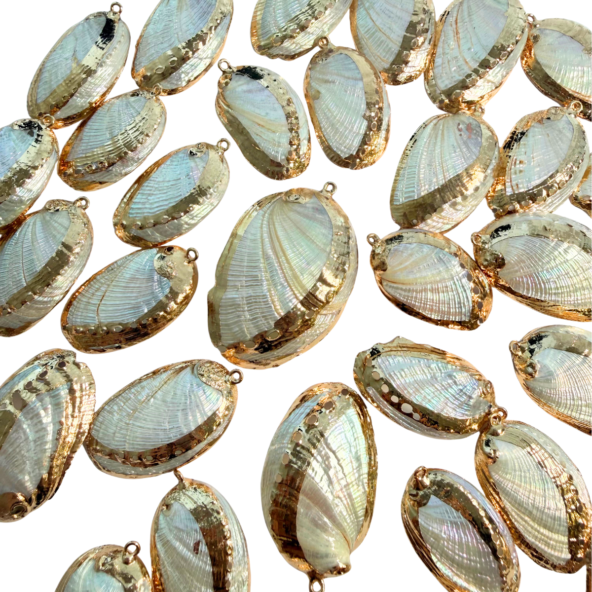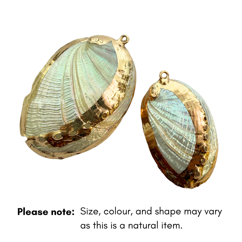 Add ocean shimmer to your designs with this natural abalone shell pendant, beautifully edged in gold plating. Each piece features unique iridescent patterns that reflect hints of green, pink, and blue, creating a captivating play of colour. Naturally one of a kind, every shell brings its own character — perfect for statement necklaces, beach-inspired creations, or coastal boho jewellery.