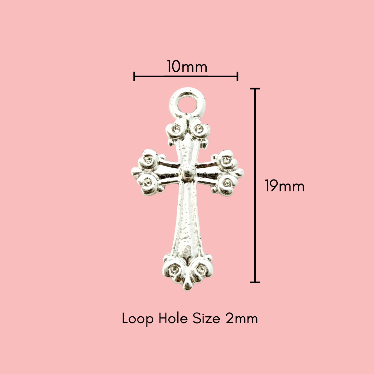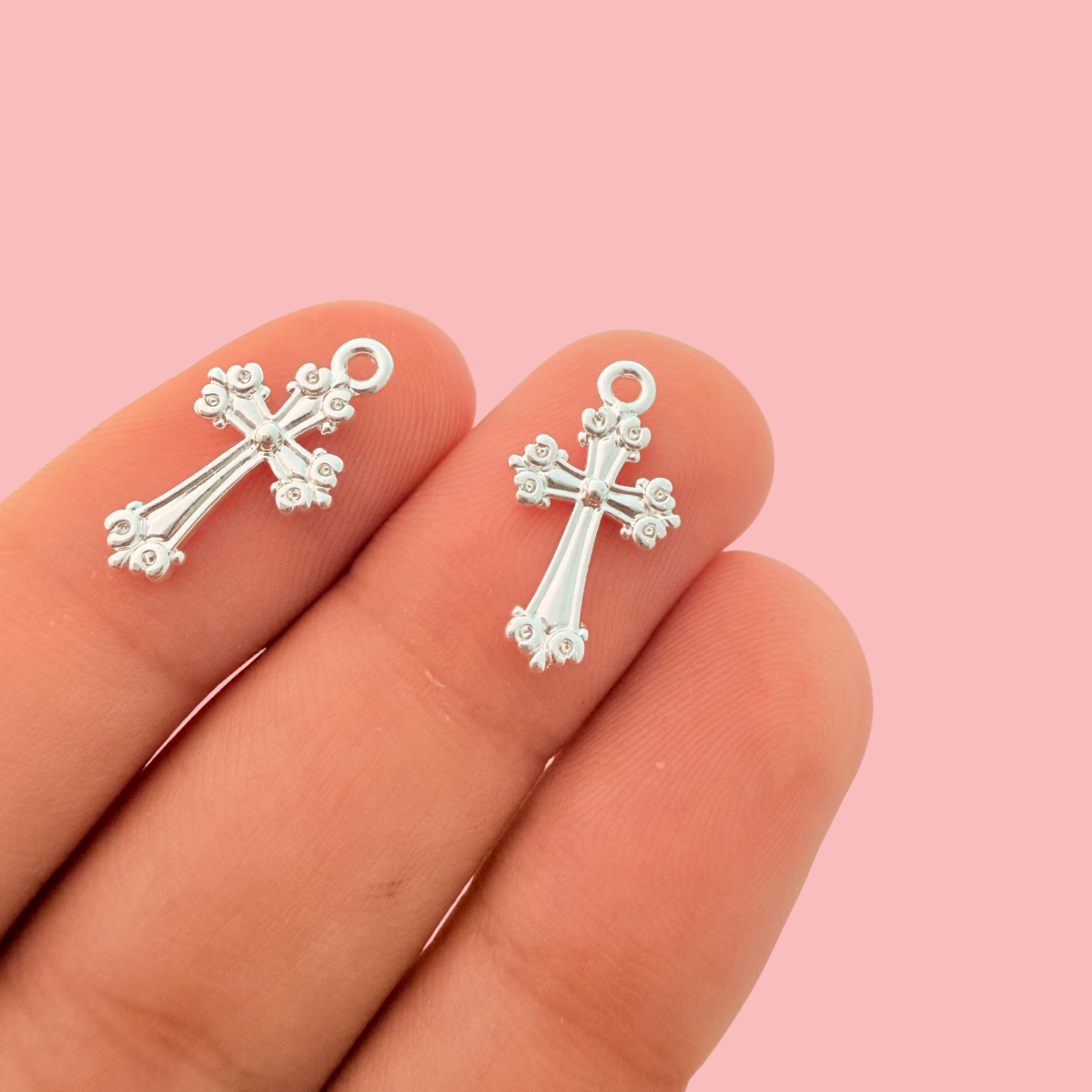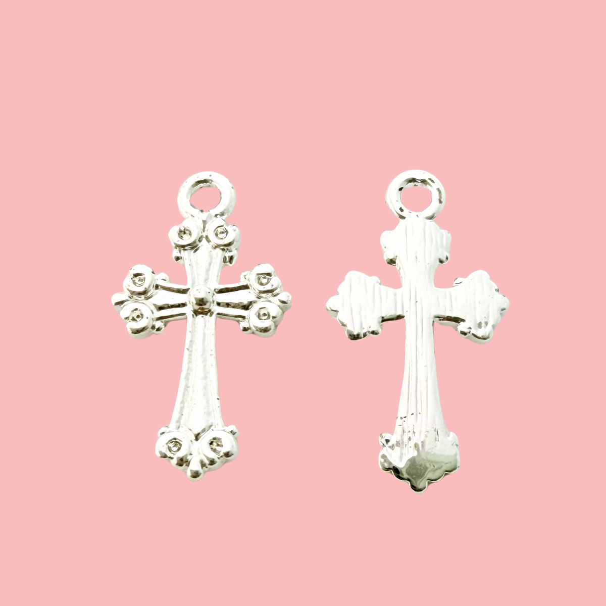 Beautifully detailed with delicate raised accents, this ornate cross charm adds depth and character to meaningful jewellery designs. Finished in a polished silver tone with tarnish-resistant plating, it offers lasting shine while highlighting the intricate texture throughout the piece.