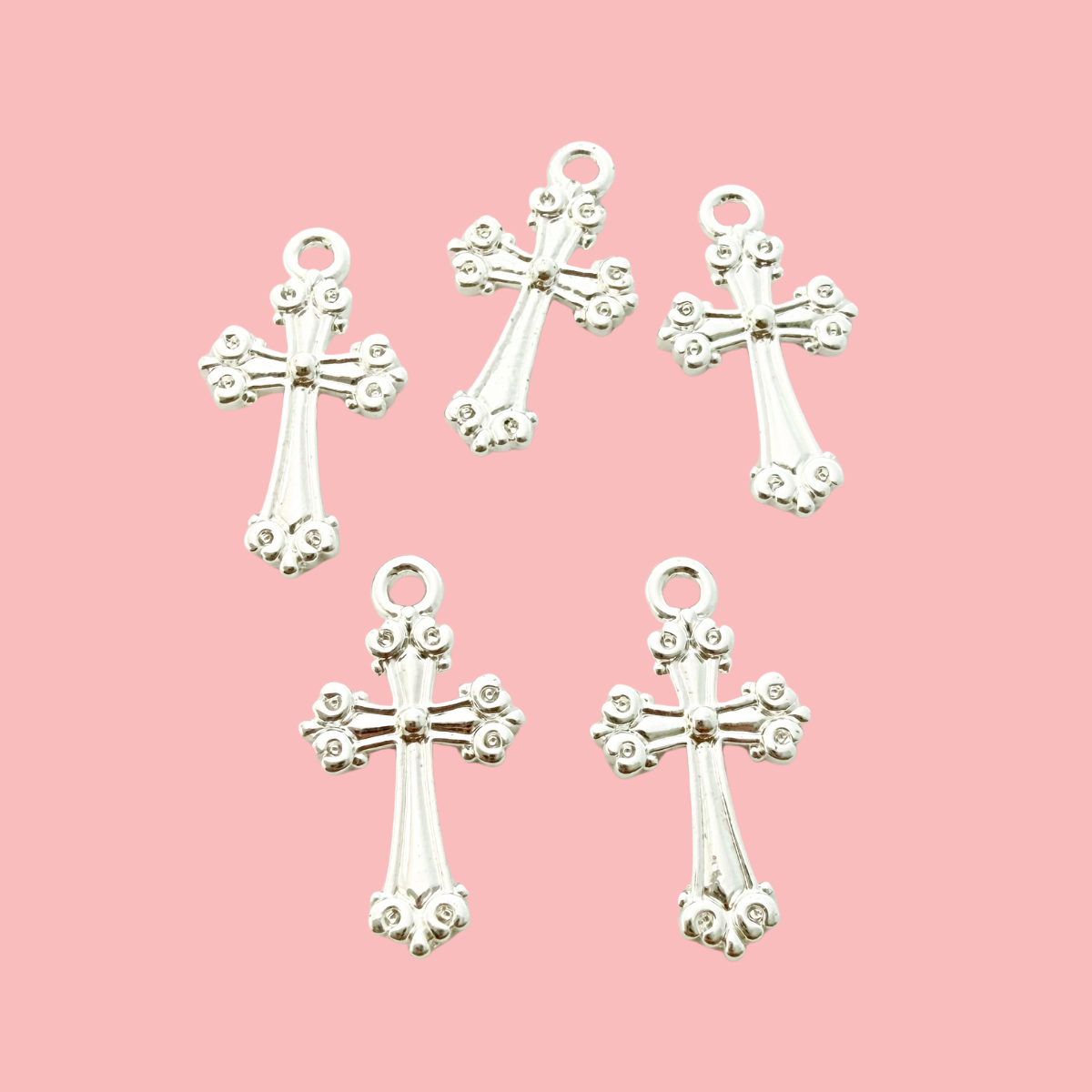 Ornate Cross Charm 5pcs Silver Plated Tarnish Resistant