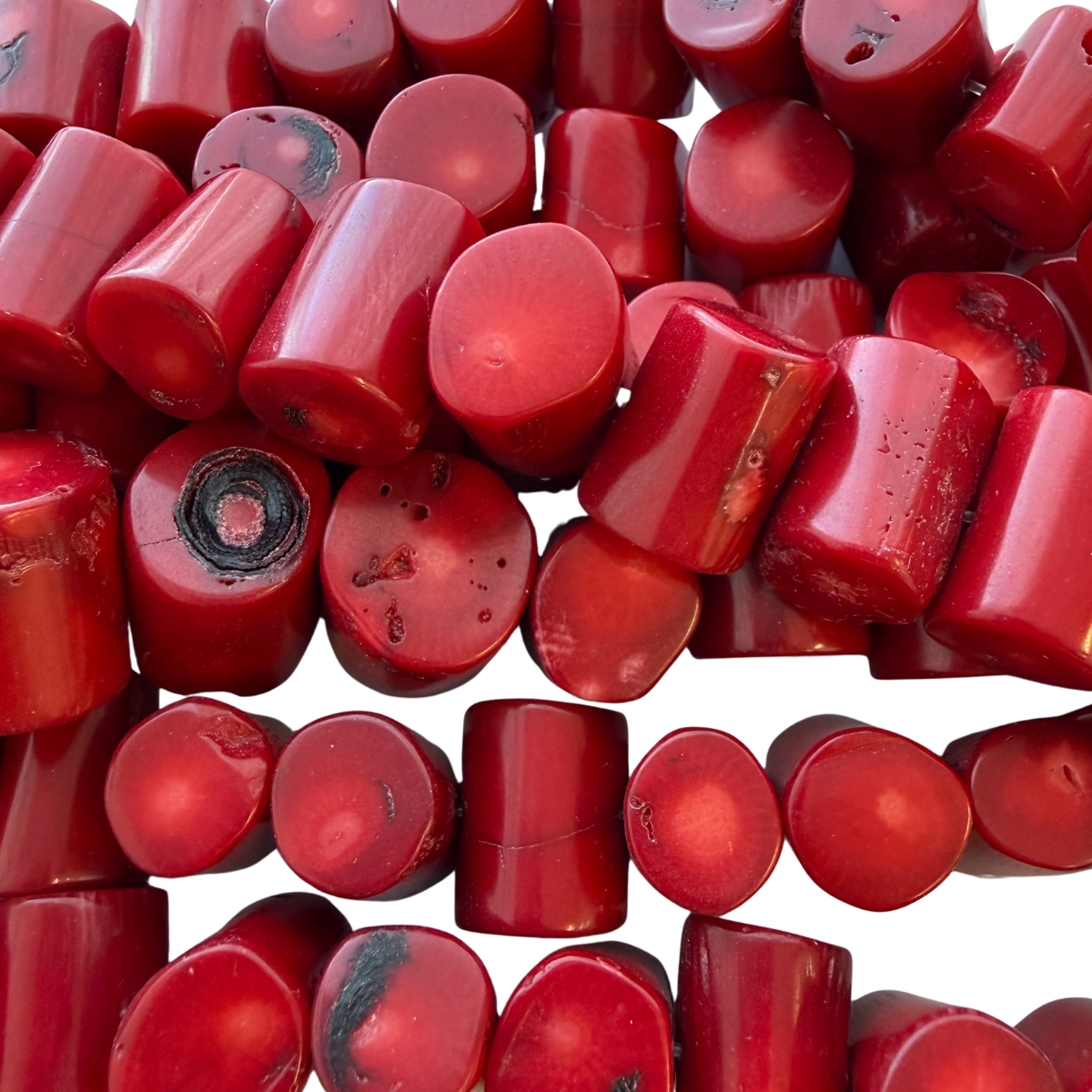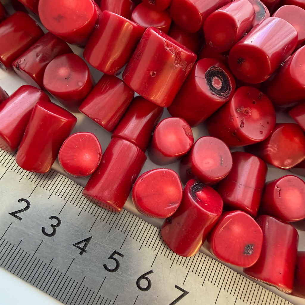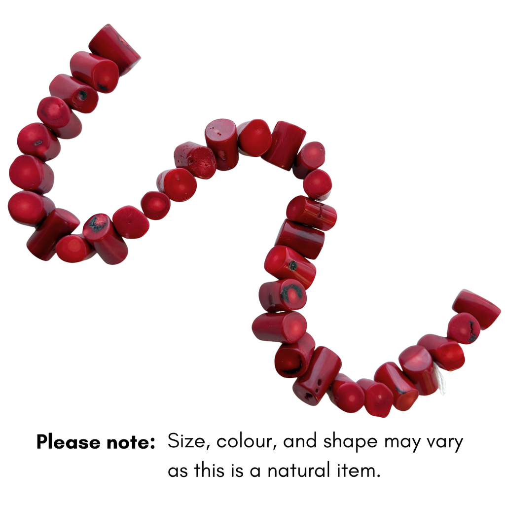 Bring bold, natural texture to your designs with these red chunky tube coral beads, made from sustainably farmed and dyed coral. Each bead features unique organic markings and variations in shape, adding a raw, earthy charm to your creations. Perfect for statement necklaces, boho designs, or adding a pop of rich red to ocean-inspired jewellery.