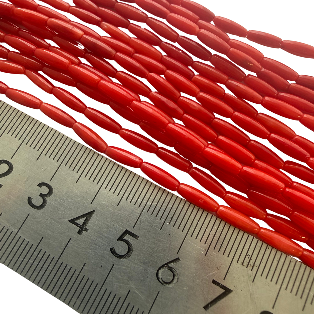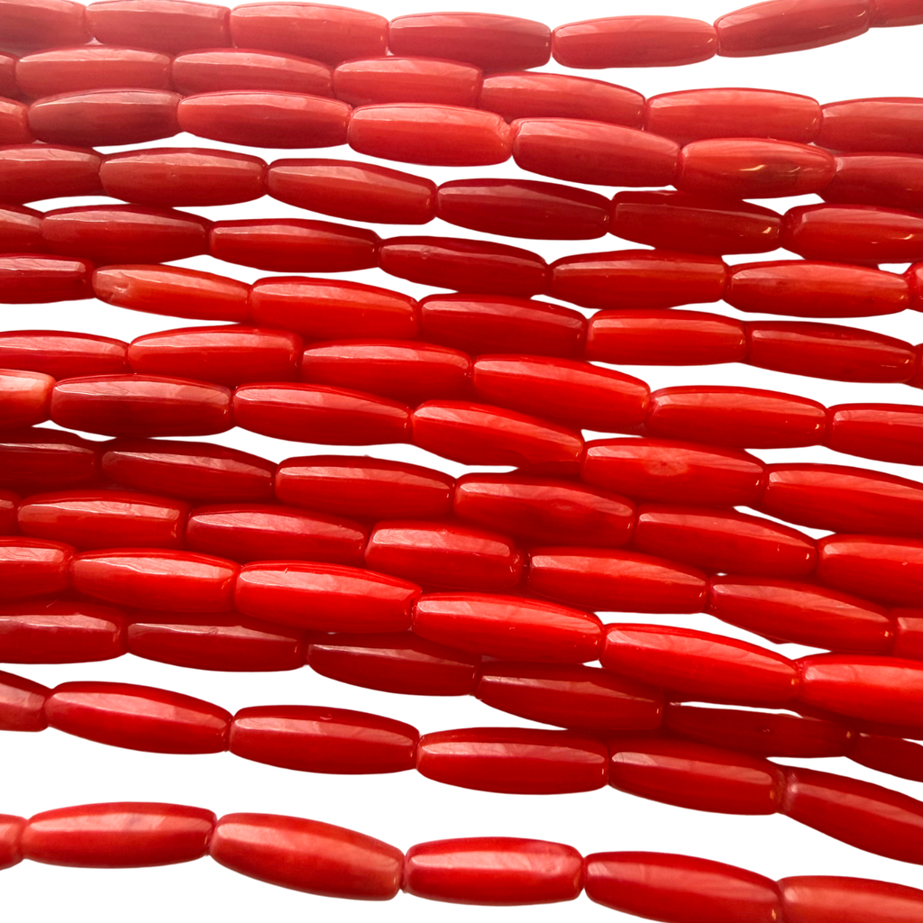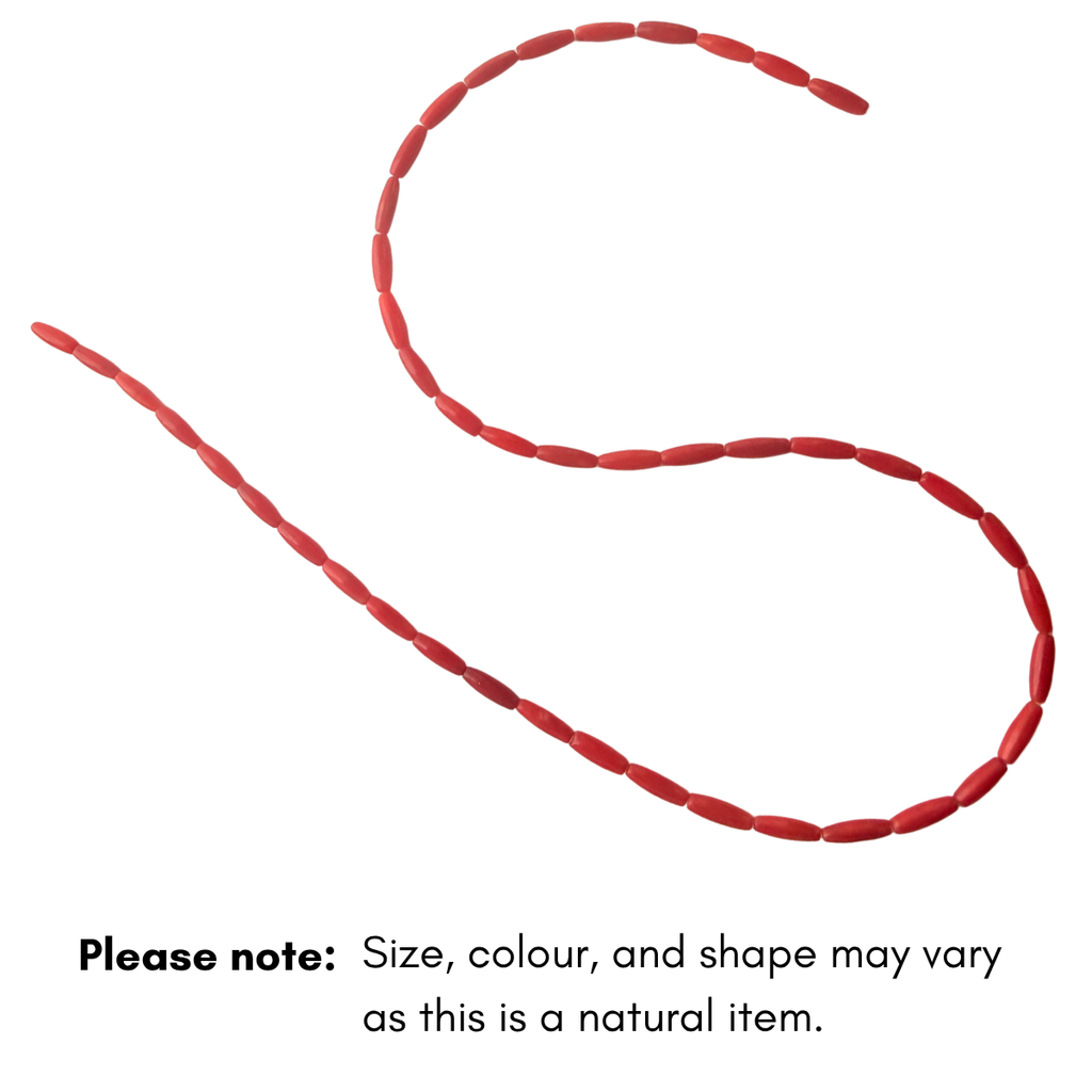 These Red Coral Rice Beads feature a sleek, elongated shape that brings a touch of sophistication to any design. With their rich, vibrant red tone and smooth polished finish, they’re perfect for statement necklaces, ocean-inspired pieces, or layering with gold and natural accents. Crafted from farmed coral, each bead varies slightly in tone and texture, adding a unique organic beauty to every strand.
