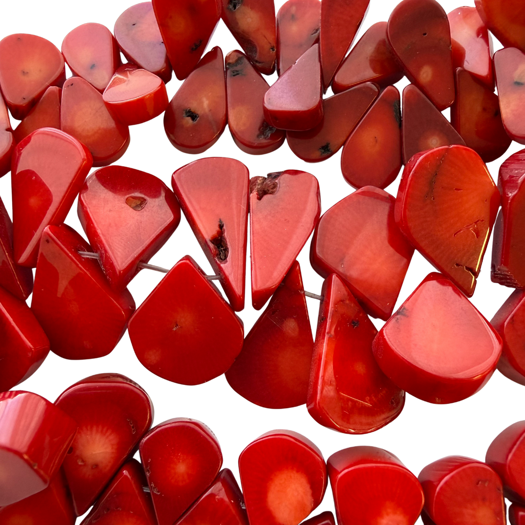 Red Coral Teardrop Beads Strand