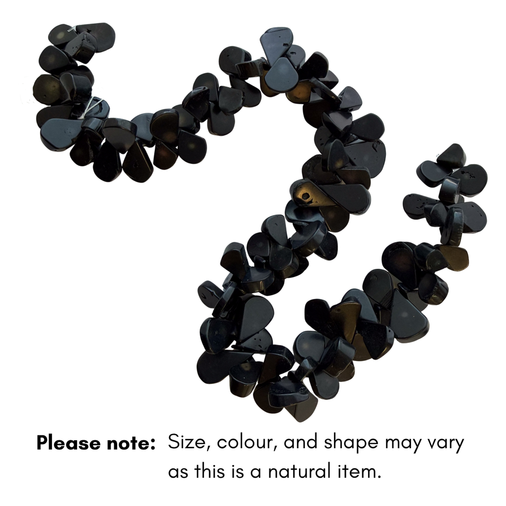 Add a bold ocean-inspired touch to your creations with these small black top-drilled teardrop coral beads, made from sustainably farmed and dyed coral. Each bead is naturally unique, featuring organic curves and subtle surface textures. Their deep black sheen brings a modern, polished edge — perfect for dainty earrings, charm accents, or layered coastal jewellery designs.